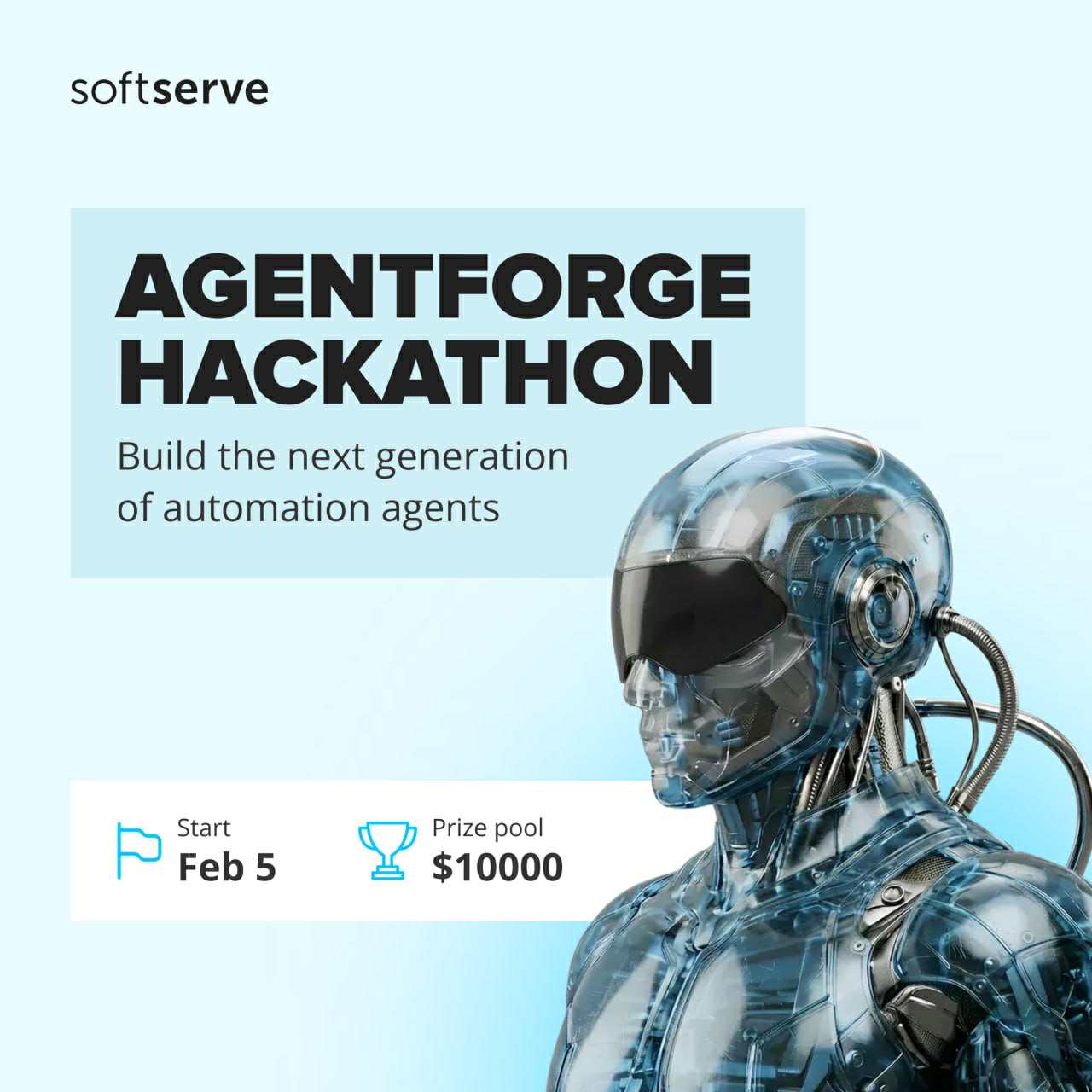 SoftServe запрошує взяти участь у AgentForge Hackathon — масштабній події, присвяченій створенню Agentic AI-рішень, які реально працюють, а не залишаються на рівні ідей.