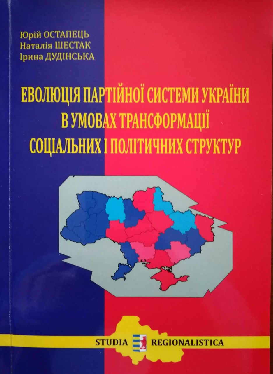 - Остапець Ю., Шестак Н., Дудінська І. Еволюція партійної системи України в умовах трансформації соціальних і політичних структур / Серія «Studia Regionalistica» / № 9 / НДІ політичної регіоналістики; УжНУ; Агенція досліджень «Карпатія». – Ужгород: Центр інформаційно-видавничої діяльності ЗІППО, 2016. – 256 с. ISBN 978-966-332-102-8