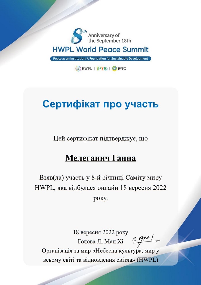 Ганна Мелеганич взяла участь у Саміті миру HWPL