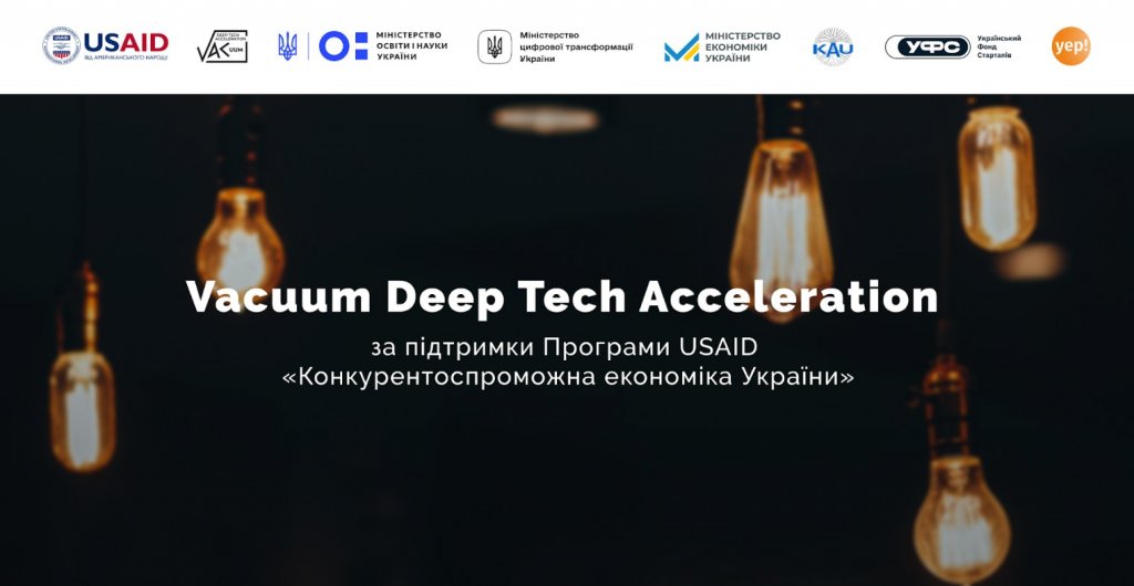 Акселераційні програми Science Intensive Innovation та Development and Renovation реалізуються Vacuum Deep Tech Acceleration за підтримки Програми USAID «Конкурентоспроможна економіка України», Міністерства освіти і науки України, Міністерства цифрової трансформації України та Міністерства економіки України спільно з Kyiv Academic University, Ukrainian Startup Fund, YEP Accelerator.