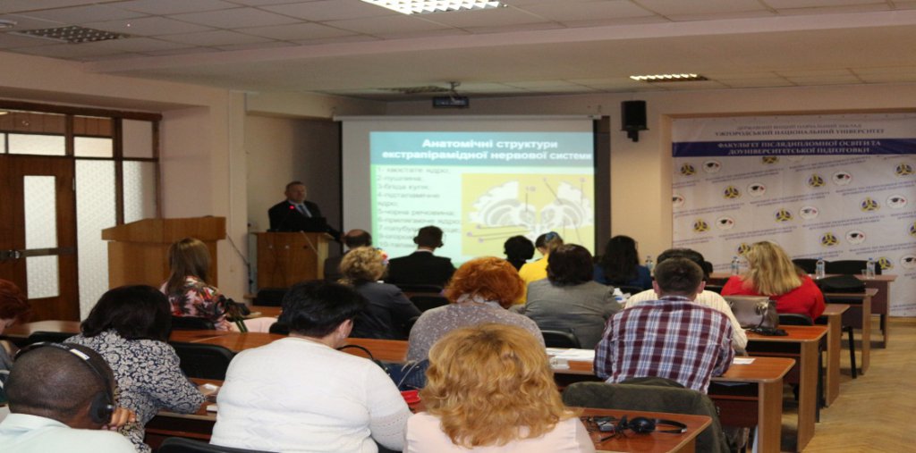 В п’ятницю 13 квітня 2018 р. на базі факультету післядипломної освіти та доуніверситетської підготовки Ужгородського національного університету відбулась міжнародна науково-практична конференція на тему: «Сучасний стан справ в клініці рухових розладів». В роботі конференції взяли участь лікарі з багатьох районів Закарпатської області. Конференція організована в рамах освітньої програми міжнародної асоціації хвороби Паркінсона та споріднених захворювань – IAPRD, яка делегувала в Ужгород провідних професорів неврології в цій галузі із Європи, а саме з Чехії, Франції та Швеції. З вітальним словом виступив проректор по науці Ужгородського національного університету проф. Студеняк Ігор Петрович, який передав вітання ректора проф. Смоланки Володимира Івановича, та подав коротку інформацію про рейтинговий стан нашого університету. Учасників конференції привітав декан факультету післядипломної освіти та доуніверситетської підготовки проф. Чопей Іван Васильович.