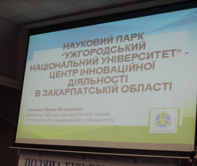 На форумі було презентовано програму діяльності Наукового парку Ужгородського національного університету, яку представив директор НДІ засобів аналітичної техніки УжНУ доцент Йосип Головач. Він розповів про пріоритетні напрямки діяльності НП, регіональні програми, ознайомив з структурою, міжнародними проектами та детально зупинився на тих конкретних розробках науковців УжНУ, які мають природозахисне спрямування, зокрема сучасні інноваційні технології по збору та переробці твердих побутових відходів.