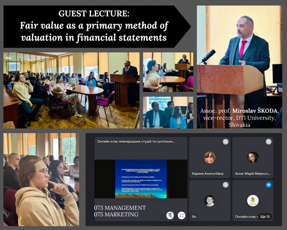 7 травня 2024 року у змішаному форматі відбулась гостьова лекція професора Мирослава Шкоди зі Словаччини (Assoc. prof. Miroslav ŠKODA, vice-rector, DTI University, Slovakia) для студентів спеціальностей 073 Менеджмент та 075 Маркетинг факультету історії та міжнародних відносин.
