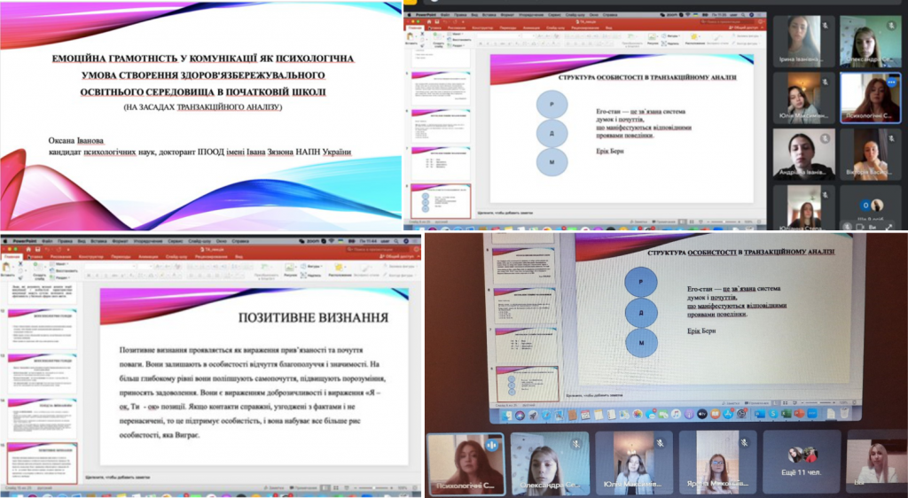 Актуальною для здобувачів вищої освіти спеціальності 013 «Початкова освіта» групи ПО-2 була інформація з проблеми емоційної грамотності в комунікації як психологічної умови створення здоров’язбережувального середовища на засадах транзакційного аналізу.