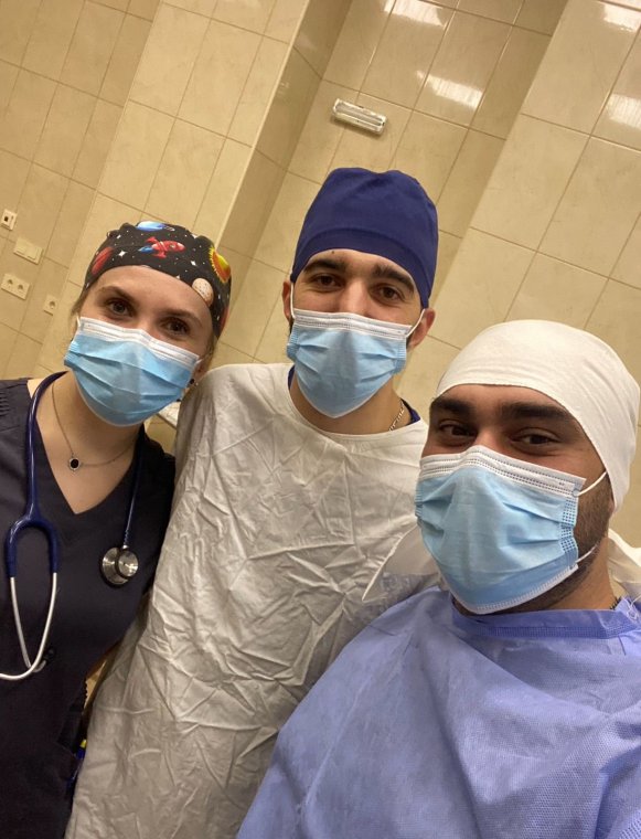 From left to right: Viktoriia Teresh, Anaesthesiology intern; Hassan Rammal, Surgery intern; Hayder Al-Zubaidi, Surgery Intern.