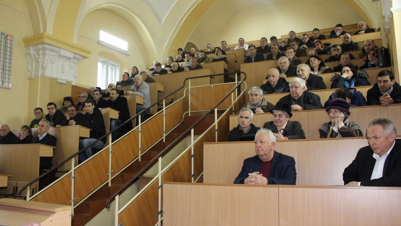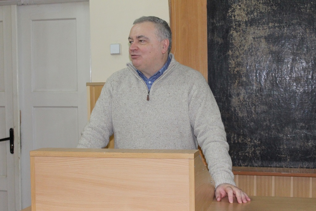 У середу, 22 січня, на фізичний факультет завітали ректор УжНУ Володимир Смоланка та проректори Олександр Сливка, Ігор Студеняк і Дмитро Сойма. Відкрив захід декан факультету Володимир Лазур, який ознайомив присутніх з кадровим потенціалом факультету, освітньою діяльністю, цьогорічною вступною кампанією, агітаційно-роз’яснювальною роботою та оновленням матеріально-технічної бази факультету. Є чим пишатися фізичному факультету й на науковій ниві. «За минулий рік ми видали три монографії, один підручник, 6 навчальних посібників, отримали 13 патентів на винаходи. Щорічно фізичний факультет має публікує у журналах, що входять до наукометричної бази «Scopus», не менше 60 статей. Також укладено договір про виконання науково-дослідницьких робіт з Національним центром управління та випробування космічних засобів із фінансуванням 170 тис. грн» – наголосив Володимир Лазур.