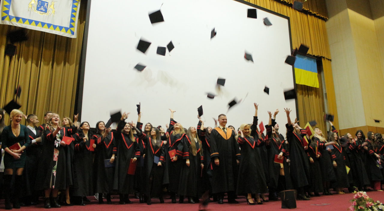 Після привітань відбулась основна частина свята, до якої винуватці сьогоднішньої події йшли протягом 5,5 років – вручення дипломів магістрів випускникам економічного факультету. А дипломи сьогодні отримали: 69 студентів стаціонару (з яких 30 дипломів з відзнакою) та 85 студентів заочної форми навчання (з яких 30 дипломів з відзнакою). Опісля вручення всі традиційно радісно підкинули конфедератки для фото й отримали ще безліч щирих побажань від своїх рідних.