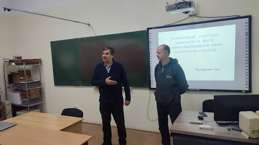 У рамках проєкту "SOMMER!" восени 2025 року для студентів, аспірантів та викладачів кафедри оптики УжНУ за сприяння завідувача кафедри доцента П.П. Гуранича майстер-класи проводили науковці відділу матеріалів функціональної електроніки Інституту електронної фізики НАН України, зокрема доктор фізико-математичних наук Ю.М. Ажнюк, який багато років працював як запрошений дослідник у Кемніцькому технічному університеті, та кандидати фізико-математичних наук: І.М. Войнарович і В.М. Кришеник. Ю.М. Ажнюк провів майстер-класи у формі лекцій на теми "Фізичні характеристики і діагностика наноматеріалів" та "Раманівська спектроскопія кристалічних та аморфних матеріалів і наноструктур". Передбачено також практичне ознайомлення з методикою мікрораманівської спектроскопії на базі Центру колективного користування науковим обладнанням «Лабораторія експериментальної та прикладної фізики» імені Ігоря Студеняка. В.М. Кришеник у своїй лекції ознайомив слухачів з основами прямого оптичного запису поверхневих рельєфних структур у некристалічних напівпровідниках. І.М. Войнарович провів лекцію на тему ”Тонкоплівкові структури: технологія та фото-термостимульований запис топологічних структур” та на практиці ознайомив студентів з особливостями технології отримання тонкоплівкових структур методом термічного та дискретного термічного напилення. У процесі проведення майстеркласів науковцям НАН України вдалося зацікавити слухачів, викликати питання та активні дискусії.