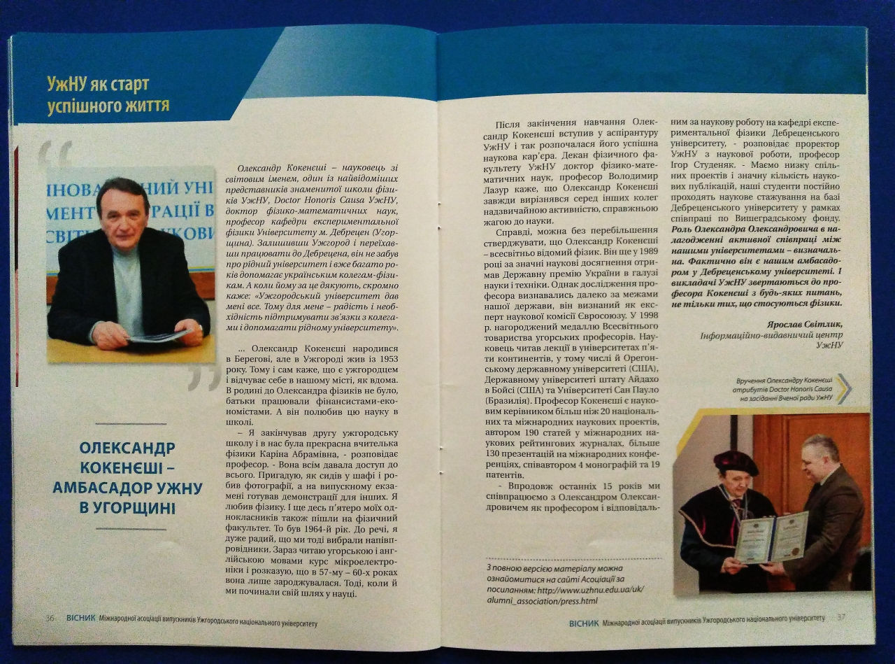 Після цих бліц-інтерв’ю опубліковані частини статей про доктора фізико-математичних наук, професора кафедри експериментальної фізики Університету м. Дебрецена Олександра Кокенєші, а також про Надію і Віктора Голдовських – випускників фізичного факультету, докторів філософії, які нині проживають в Ізраїлі. Надія працює завідувачем відділу стандартів та частоти Національної фізичної лабораторії, відповідальна за державний стандарт часу і частоти та національну шкалу часу, є вченим співробітником Міністерства економіки Ізраїлю, членом Міжнародного комітету часу та частоти. Віктор – член Оптичного товариства США, а також науковий керівник проекту з розробки оптичних блоків квантових стандартів частоти компанії «Accu Beat» та науковий консультант лабораторії спектроскопії плазми Інституту ім. Вайцмана.