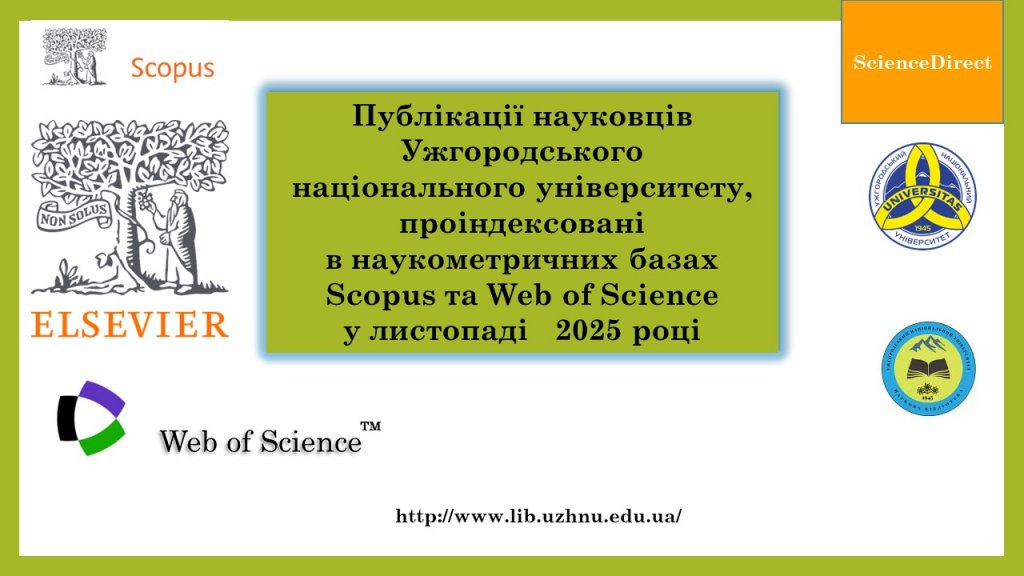 Наукова бібліотека Ужгородського національного університету інформує наукову спільноту про публікаційні досягнення вчених у найрейтинговіших наукометричних базах світу у листопаді 2025 році.