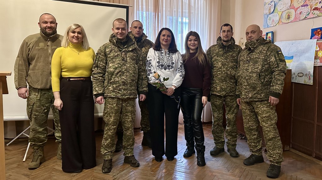 22 січня 2025 року доцент кафедри Античності, Середньовіччя та історії України домодерної доби Ужгородського національного університету Неля Михайлівна Світлик та лаборант цієї ж кафедри Каріна Олегівна Гайчук взяли участь в урочистому зібранні наших воїнів з нагоди Дня Соборності України. Працівники закладу вищої освіти долучилися до цього дійства на запрошення офіцера з організації дозвілля Національної гвардії України Ярослава Гайдука та методистки Матейко Мар’яни. Доцент Світлик Н.М. прочитала для воїнів лекцію на тему: «День Соборності України - наша єдність, наша сила».