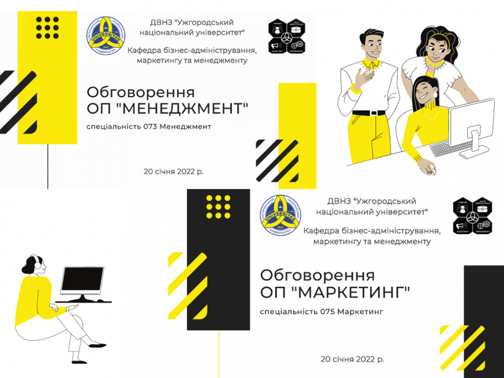 17 грудня 2021 року в онлайн-форматі відбулася зустріч групи стейкхолдерів з питань удосконалення освітньо-професійних програм «Менеджмент» та «Маркетинг». Серед учасників було декілька цільових груп: викладачі, випускники, студенти, роботодавці. Під час зустрічі було обговорено: аналіз та перегляд компонент діючих освітньо-професійних програм «Менеджмент» та «Маркетинг» на першому (бакалаврському) рівні вищої освіти задля відповідності запитам роботодавців, здобувачів, випускників та результатам досліджень і проведених опитувань відповідальними особами. Враховано також досвід створення аналогічних програм інших вітчизняних закладів вищої освіти та досвід роботи над ОНП інших спеціальностей ДВНЗ «УжНУ».