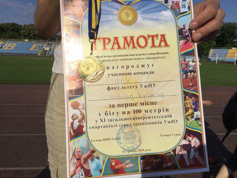 Колектив факультету суспільних наук ВІТАЄ старшого викладача кафедри соціології та соціальної роботи Новосад Крістіну з перемогою у змаганнях з легкої атлетики (біг 100 м. - жінки).