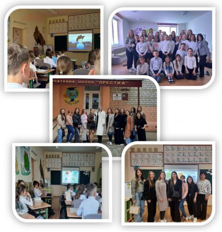 З метою практичного ознайомлення з проведенням уроків у початковій школі із застосуванням здоров’язберігаючих технологій в рамках дисципліни «Методика навчання соціальної та здоров’язбережувальної освітньої галузі» (викл. проф. Оксана ТОВКАНЕЦЬ) здобувачі другого курсу першого (бакалаврського) рівня вищої освіти спеціальності 013 «Початкова освіта» факультету суспільних наук УжНУ, група ПО-2, за сприяння директора Наталії ГРИЦЕНКО відвідали Ужгородську початкову школу «Престиж».