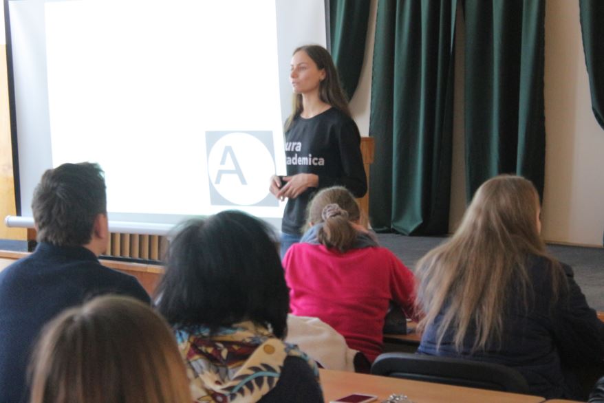 На початку зустрічі ініціатори Aura Academica розповіли про простір, що має стати безкоштовною платформою для втілення студентських мрій, всебічного розвитку та співпраці студентів всіх факультетів.