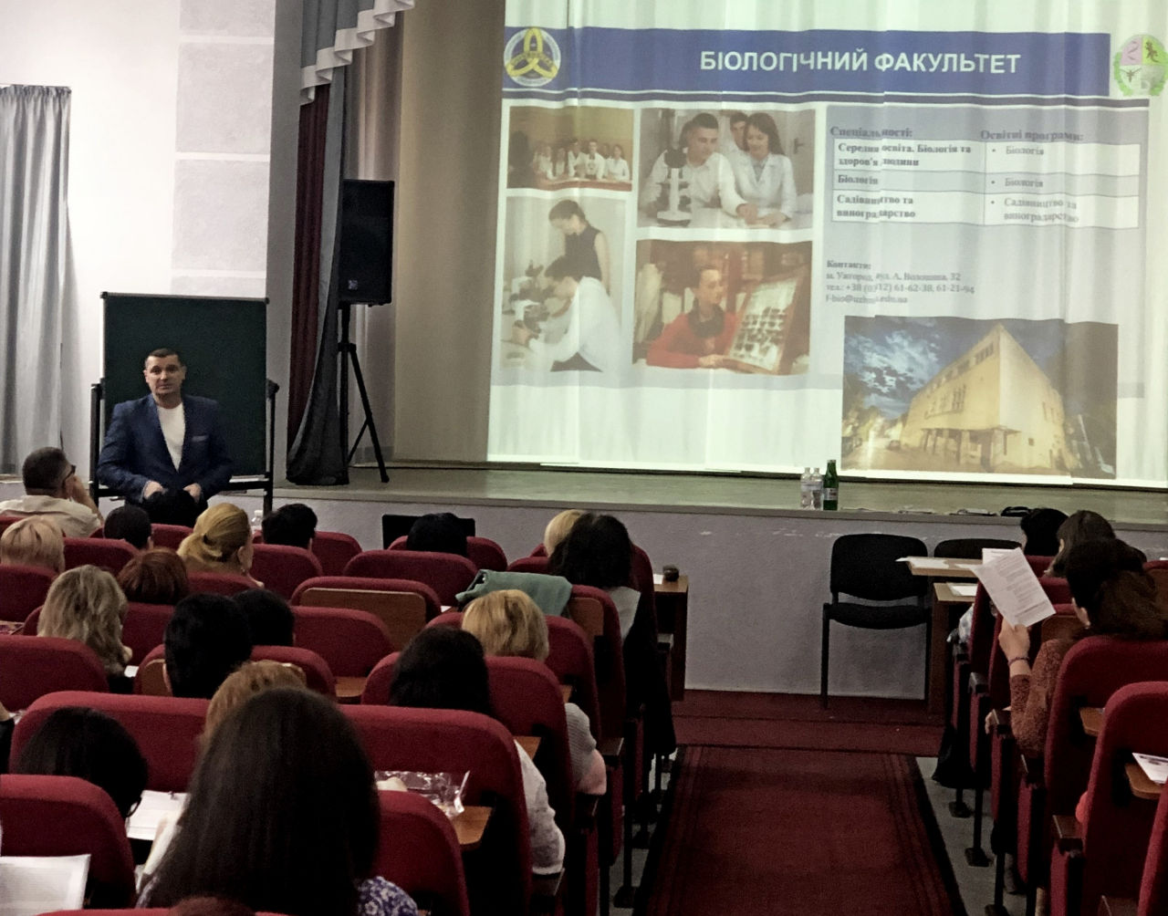 На форумі виступили доцент Віталій Симочко, який представив освітню локацію, висвітлив основні напрямки роботи факультету, особливості підготовки вчителів-біологів на сучасному етапі реформування освіти в Україні.