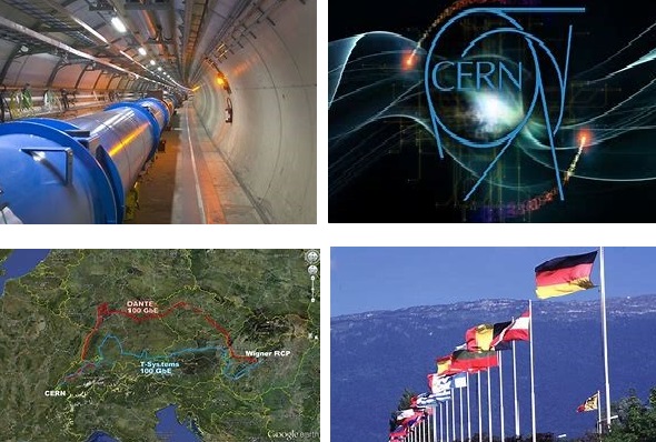 Логотип ЦЕРНУ і географічне розташування, країни, які приймають участь у експериментах на Великому Адронному Колайдері