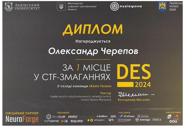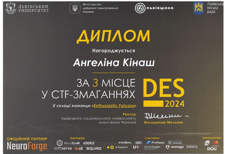 Студенти кафедри ТЕІБ стали переможцями CTF-змагань DES-2024