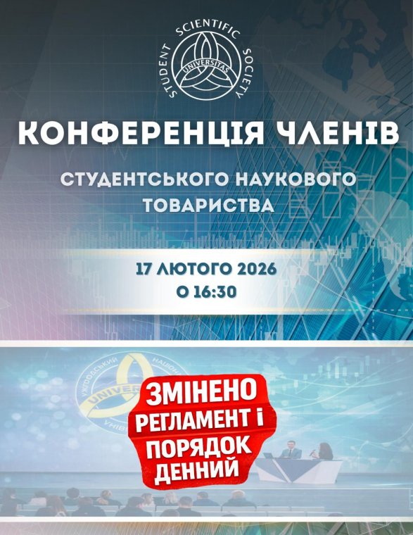 Студентське наукове товариство скликає конференцію членів (змінено регламент і порядок денний)