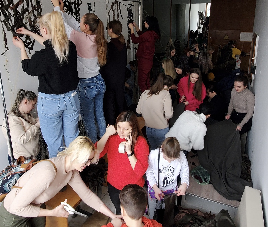 «Коли ми підрахували, що завершили 50-ту сітку, нам стало дуже тепло на душі. Адже коли працюєш, не помічаєш, скільки роботи вже зроблено. Перші два-три тижні ми працювали дуже інтенсивно – паралельно плелось по декілька маскувальних сіток. Ми працювали зранку до вечора, допоки охоронець не зачиняв двері ректорату. Зараз, звичайно, процес сповільнився – стало менше людей, і менше матеріалів. Це зрозуміло, адже люди повернулись до своєї роботи, а також трохи пройшов «запал» перших днів війни.