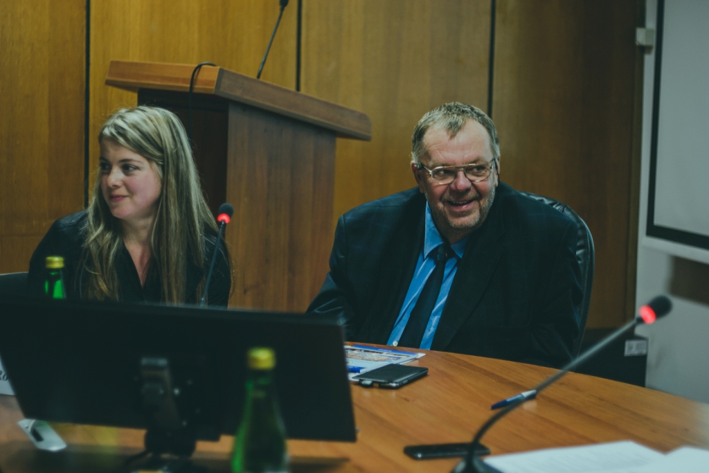 До вітального слова був запрошений і керівник проекту професор Клаус Розенталь з Німеччини. Він наголосив на необхідності постійного технічного розвитку, а також співпраці університетів та підприємств. «Учора ми побували на виробництві, і бачили дуже хороший приклад. Я був дуже здивований тим, як багато людей працює на цьому підприємстві, адже на виробництвах Німеччини все більш автоматизовано та роботизовано. А ручна праця на фабриках, заводах чи чомусь подібному просто зникає. Наше завдання – об’єднання університетів та підприємств заради спільної мети. Така практика потрібна для всіх країн».