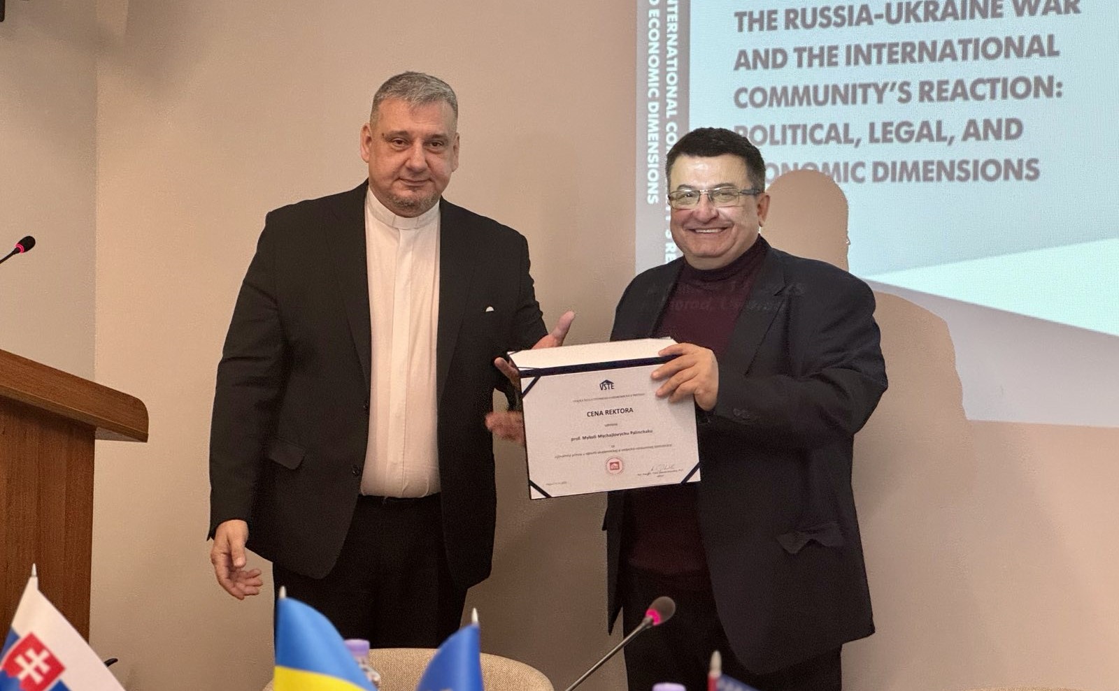 Наступним до слова запросили ректора Інституту технологій та економіки в Пряшові Марека Сторожку (Словаччина). Він відзначив плідну співпрацю між академічними установами, зазначивши, що завдяки об’єднанню зусиль кількох науковців вдалося досягти значних результатів. «Я щиро дякую всім за участь, зокрема шановному професору Миколі Михайловичу Палінчаку за його відданість, підхід та витрачений час. Будь ласка, прийміть цю нагороду як знак нашої вдячності», — наголосив гість. Після промови він вручив відзнаку ректора Інституту технології та економіки в Пряшові за вагомий внесок у розвиток українсько-словацької академічної співпраці очільнику факультету міжнародних економічних відносин.