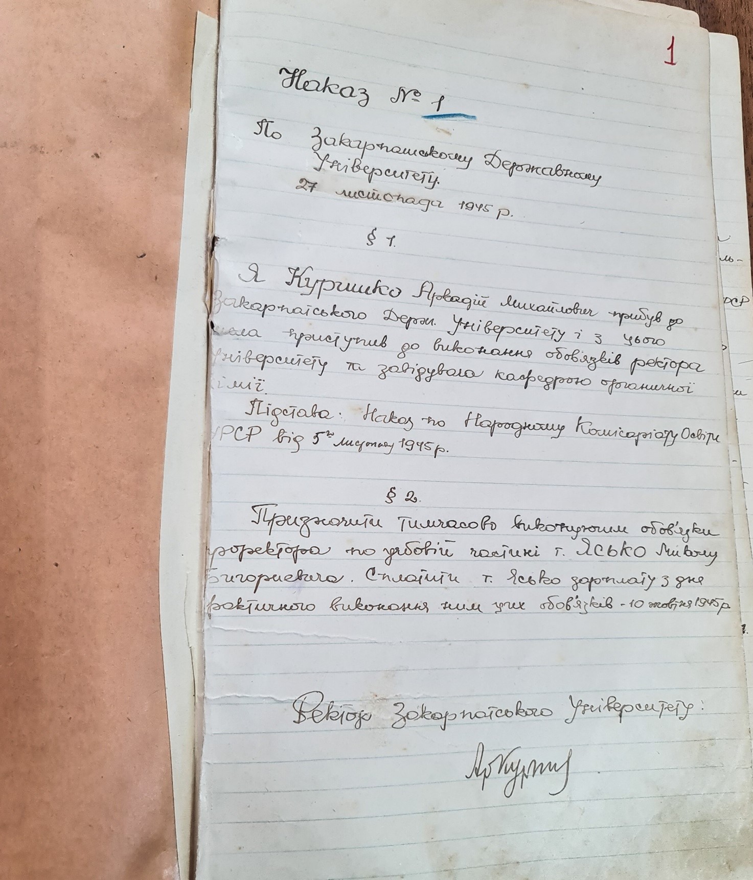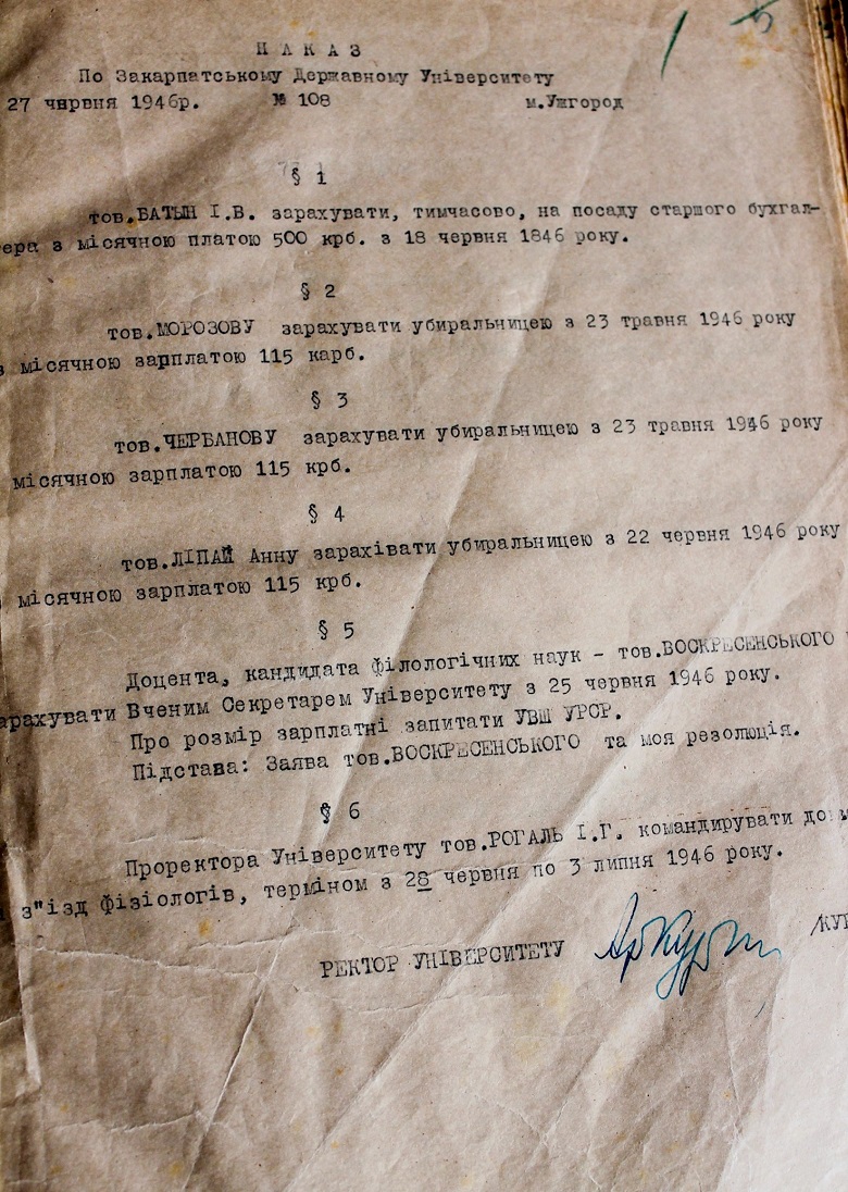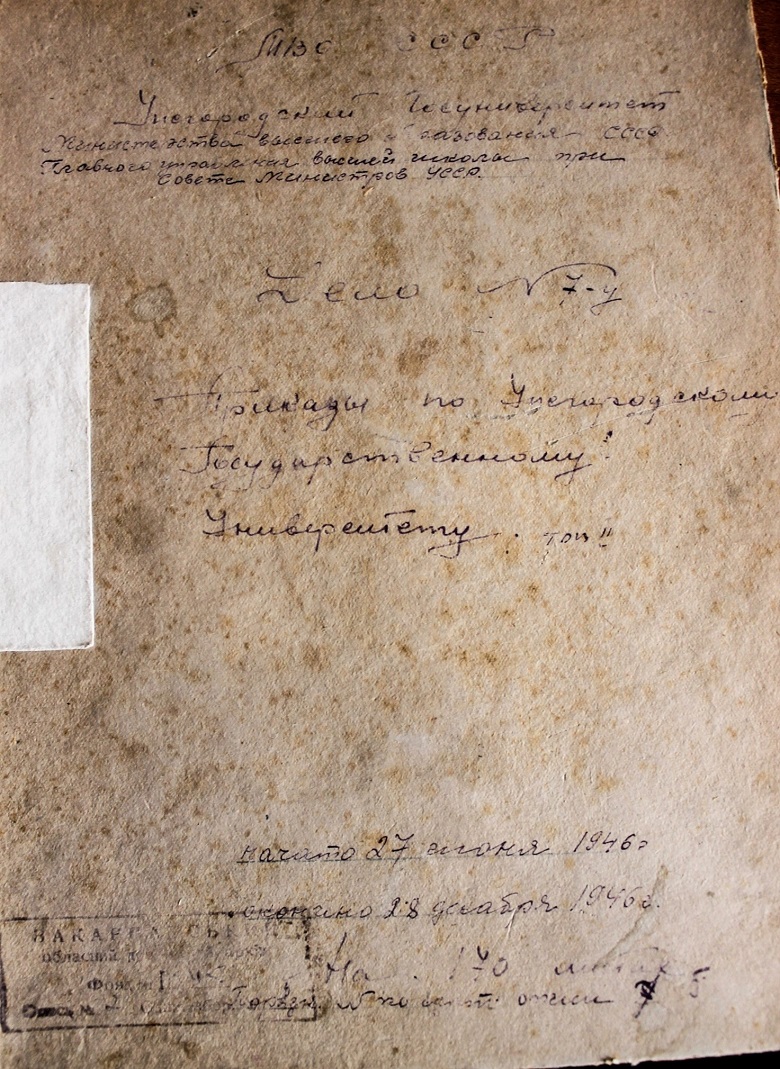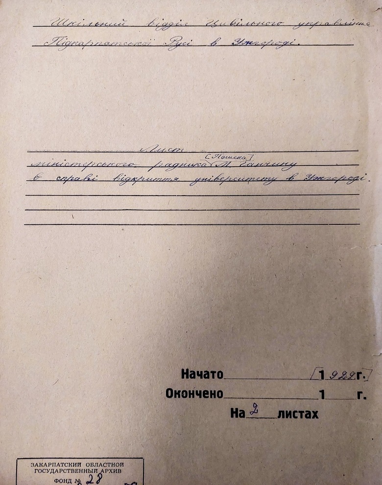 Хочемо представити оригінальні архівні документи, які знаходяться в Державному архіві Закарпатської області, завдяки яким маємо підтвердження багатоетапності процесу заснування та відкриття Ужгородського національного університету, який тривав понад чверть століття. Ви зможете ознайомитися з листами шкільного референта та міністерського радника Й. Пешека з проханням про потребу створення вищого навчального закладу в краї, зверненнями з приводу цього же питання місцевих культурних товариств, як от «Русское культурно-просветительное общество им. А.В. Духновича», «Просвіта», «Педагогічне товариство Підкарпатської Русі», «Учительське товариство Підкарпатської Русі», «Шкільної Матки» та «Союз Підкарпатських студентів», а також побачити як виглядали перші накази університету, студентські квитки та залікові книжки. Всі ці документи також можна оглянути на виставковому стенді в приміщенні ректорату.