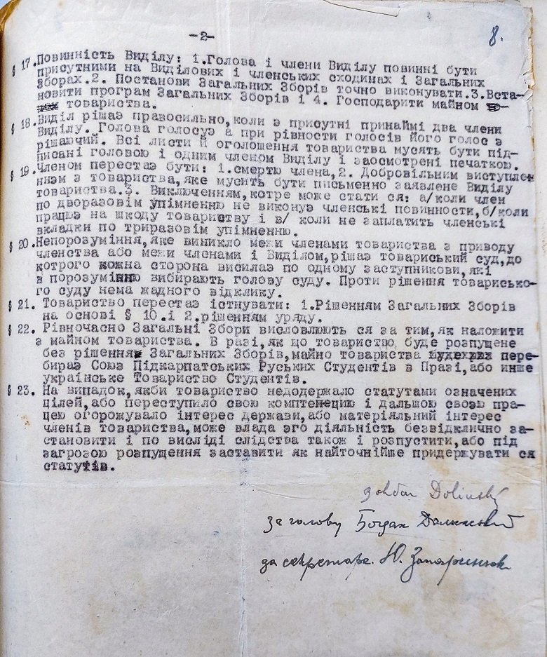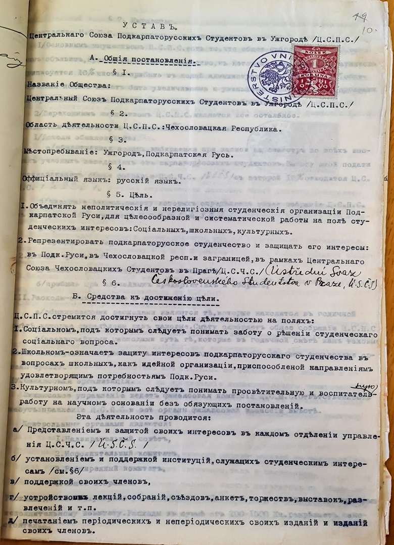 Статут «Центрального Союзу підкарпаторуських студентів в Ужгороді», 1932 рік