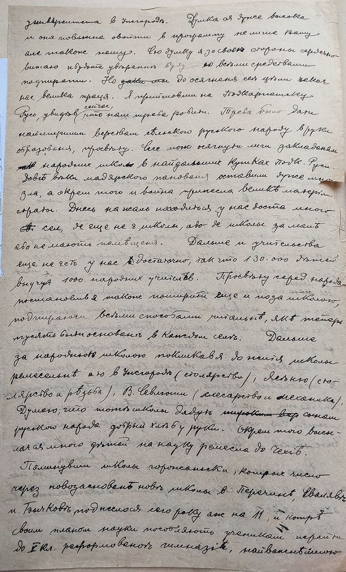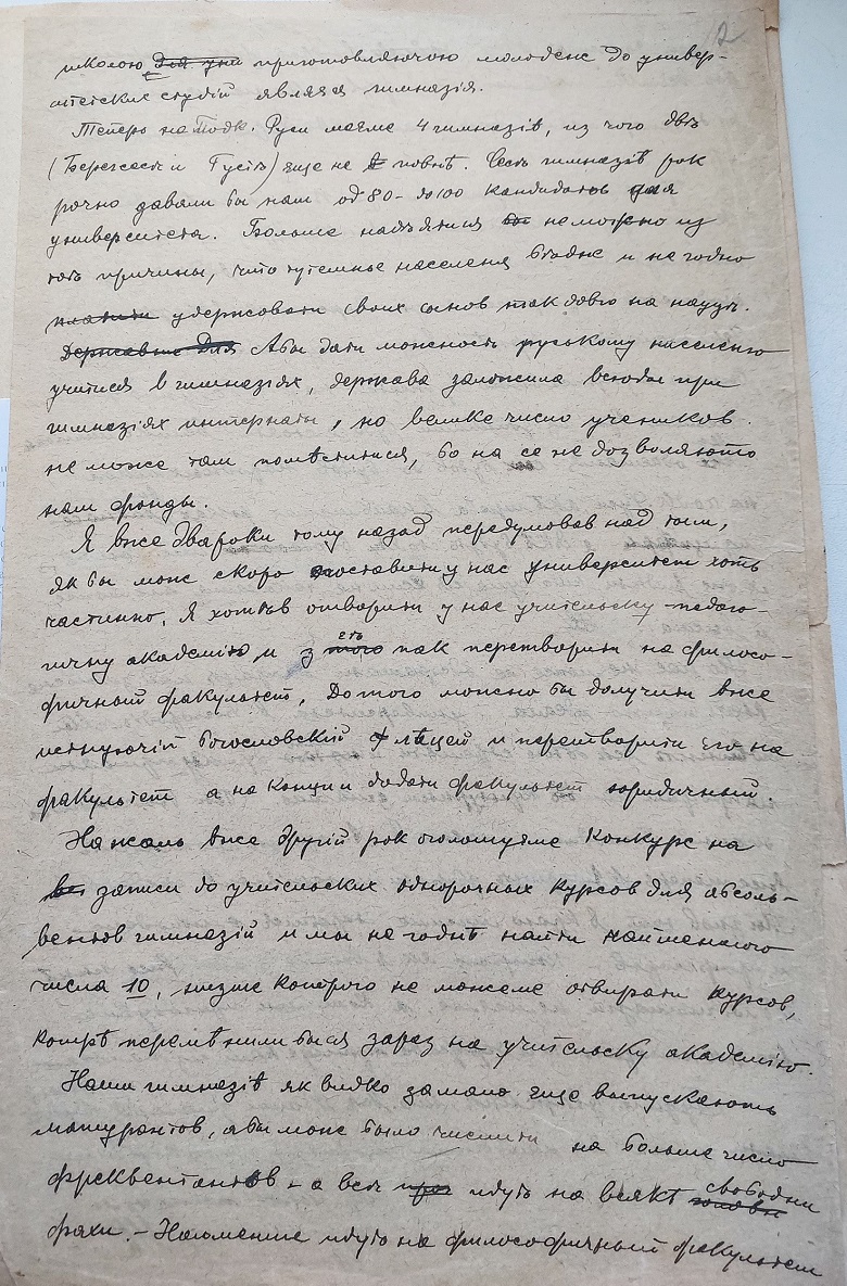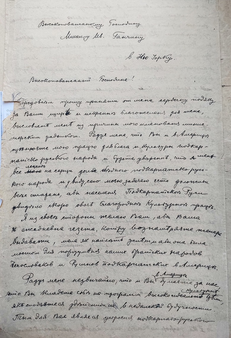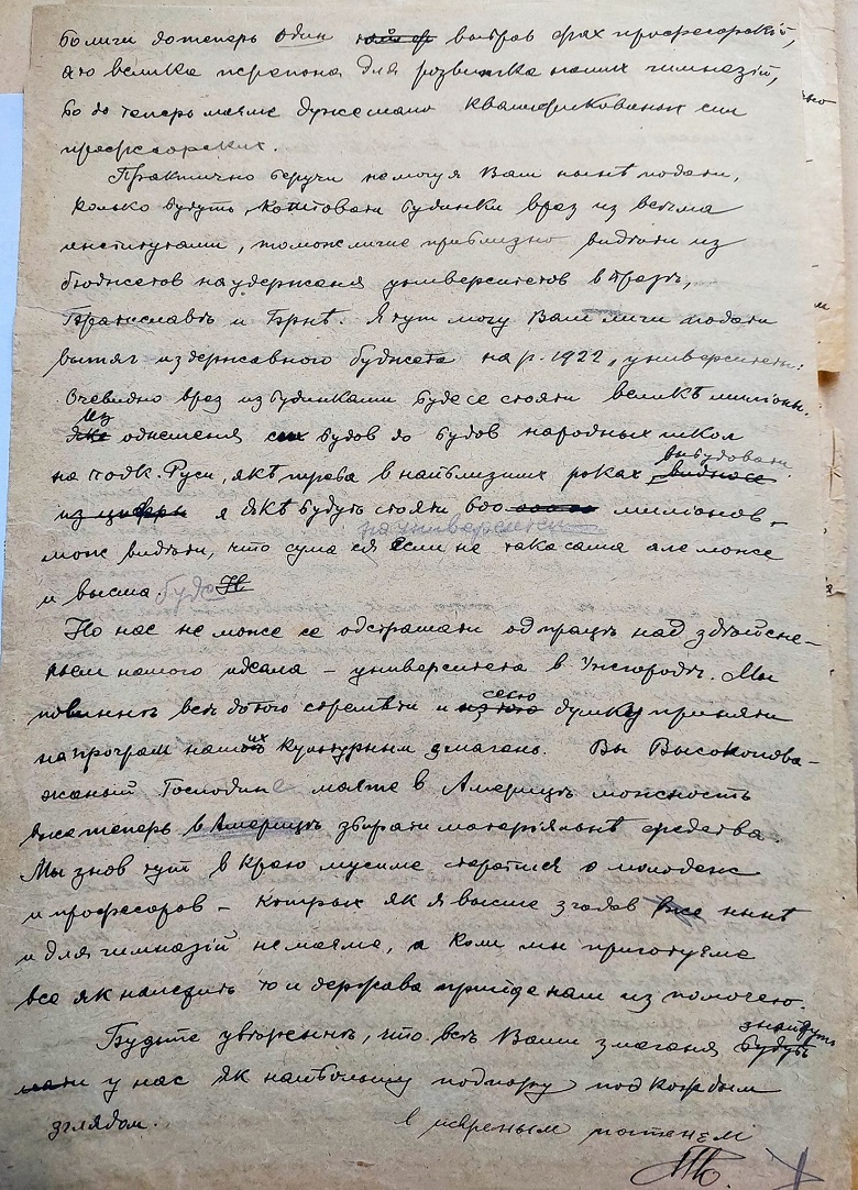 Лист міністерського радника С. Пашека М. Ганчину в справі відкриття університету в Ужгороді