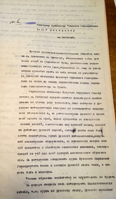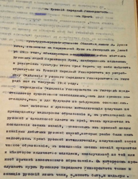 Запити правління Товариства ім. О. Духновича до «Руського народного університету» в Празі про можливість відкриття відділення університету в Ужгороді, 1924 рік