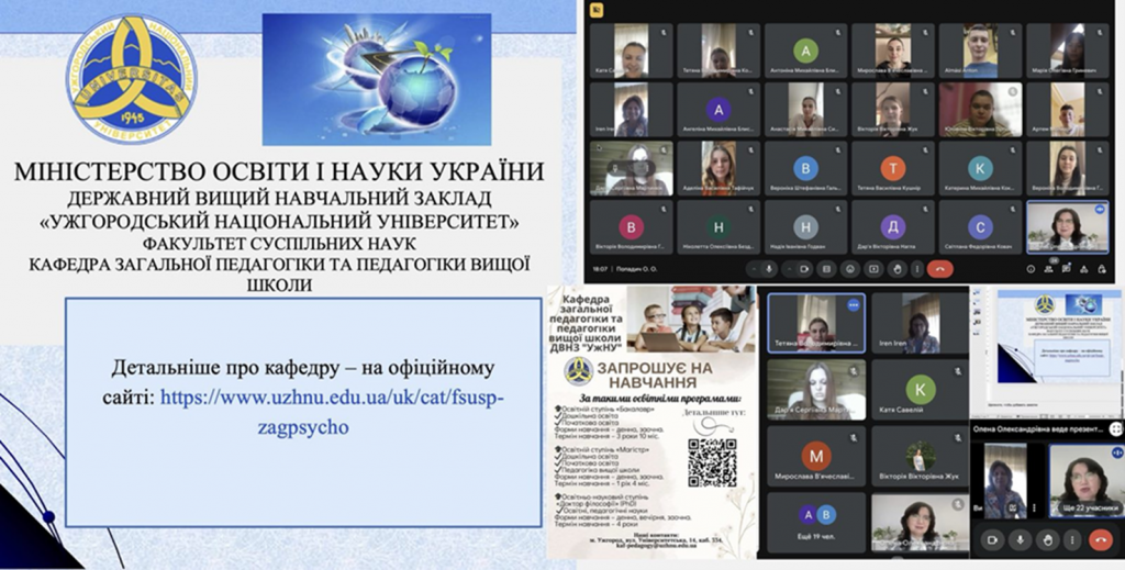 З цією метою 5-7 квітня 2025 року професор кафедри загальної педагогіки та педагогіки вищої школи Попадич Олена Олександрівна провела онлайн-зустрічі з учнями та вчителями освітніх закладів області, зокрема Іршавського ліцею та Іршавського ліцею №1, Ільницького спортивно-гуманітарного ліцею, Ільницького закладу загальної середньої освіти І-ІІІ ст., Осійського закладу загальної середньої освіти І-ІІІ ст., Кам’янського ліцею, Берегівського ліцею імені Ілони Зріні та інших.