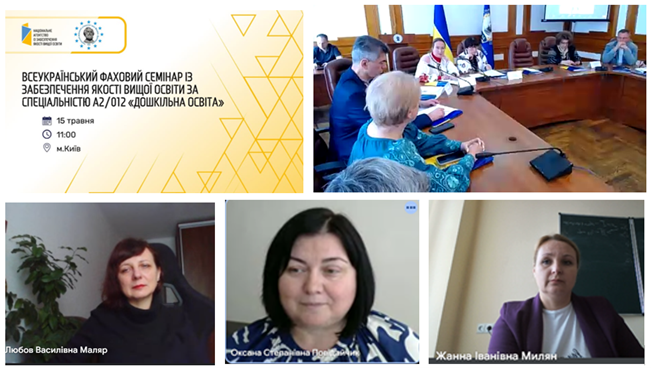 15 травня 2025 року Національне агентство у партнерстві з Українським державним університетом імені Михайла Драгоманова ініціювало проведення Всеукраїнського фахового семінару із забезпечення якості вищої освіти за спеціальністю «Дошкільна освіта». Семінар відбувся в м. Київ у змішаному форматі. Онлайн участь у семінарі взяли також представники кафедри загальної педагогіки та педагогіки вищої школи ДВНЗ «УжНУ»: зав.кафедри, проф. Повідайчик О.С., гарант ОП «Дошкільна освіта» першого (бакалаврського) рівня вищої освіти, доц. Маляр Л.В. та викл. Милян Ж.І.