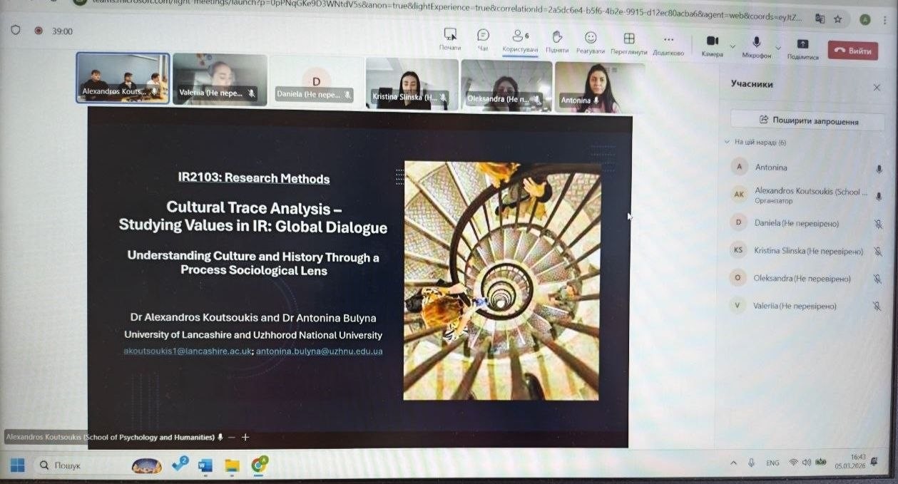 From January 29 to March 5, UzhNU successfully implemented the international COIL (Collaborative Online International Learning) module “Studying Values in International Relations: Global Dialogue” / “Studying Values in International Relations: Global Dialogue,” which took place as part of the Twinning cooperation with the University of Lancashire, Preston (United Kingdom).