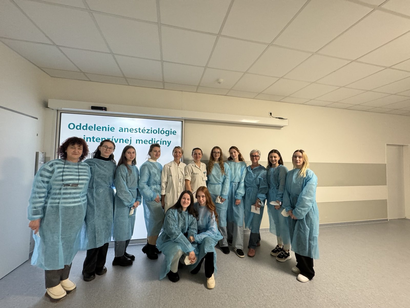 The students of the Nursing speciality spent the first week practicing at the Trnava University Hospital, in particular in the neonatal, oncological and surgical departments. Associate Professor Valentyna KOVAL took part in the practical skills exam for Slovak students of Nursing, which took place in the Trauma Department of the Trnava University Hospital. During the second week, the students had the opportunity to learn practical skills in the following departments: surgery, anaesthesiology and intensive care.