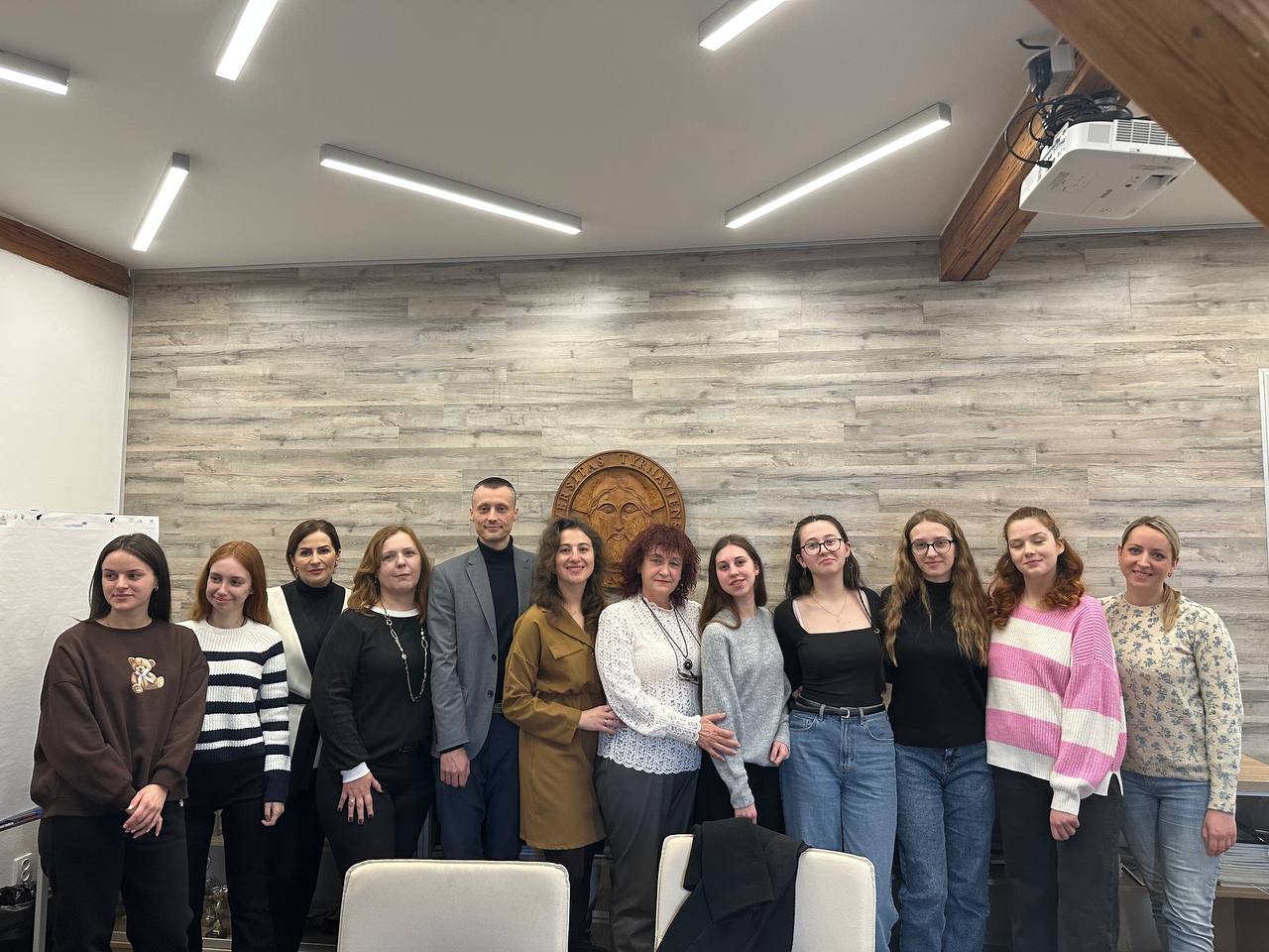 On the first and final day of our stay, a roundtable discussion was organised with the leadership of the Faculty of Health and Social Work, including the Deputy Dean, Professor Silvia Putekova, Head of the Department of Social Work, Mgr. Peter Patyi, PhD, other associate professors and professors of the Department of Social Work at the University of Trnava.
