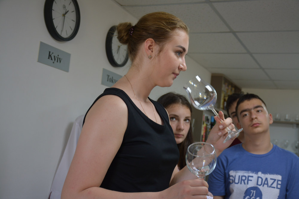 Загалом про туризм, терміни, якими оперують туризмознавці, готельно-ресторанну справу та її тонкощі розповіла студентка 3 курсу «Готельно-ресторанної справи» Тетяна Козловська. Далі учні відповідали на питання, які стосувалися обговорених тем та за зображеннями відгадували країну. Та найбільше учням сподобався майстер-клас «Тонкощі столового етикету».
