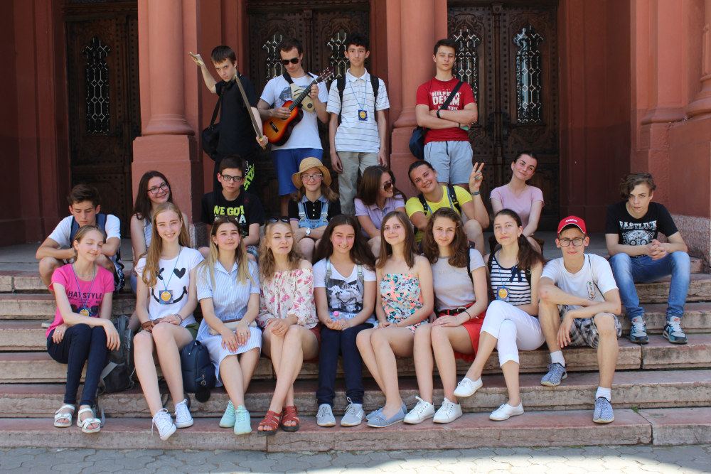 Наостанок дня, хоч він видався більш ніж насиченим, сили й ентузіазм в учнів не вщухли! Їх школярі приберегли для захоплюючого квесту історичними пам’ятками міста. На кожному пункту квесту на них чекала нова загадка, правильно відгадавши котру, вони отримали підказку, куди їм прямувати далі. Але перед тим обов’язково потрібно було зробити фото-доказ – селфі. Так учні змагались, хто скоріше здогадається, де колись знаходилося приміщення колишнього правління Ужанського комітату, а де знайти пам’ятник визначному угорському діячу. І конкуренція виявилась не дитячою! Команди, які зайняли перше і друге місце, дістались фінальної точки з різницею в кілька секунд. Все ж кращі учні ужгородських шкіл впорались і зробили разом останній фото-доказ на сьогодні біля Закарпатської обласної філармонії.