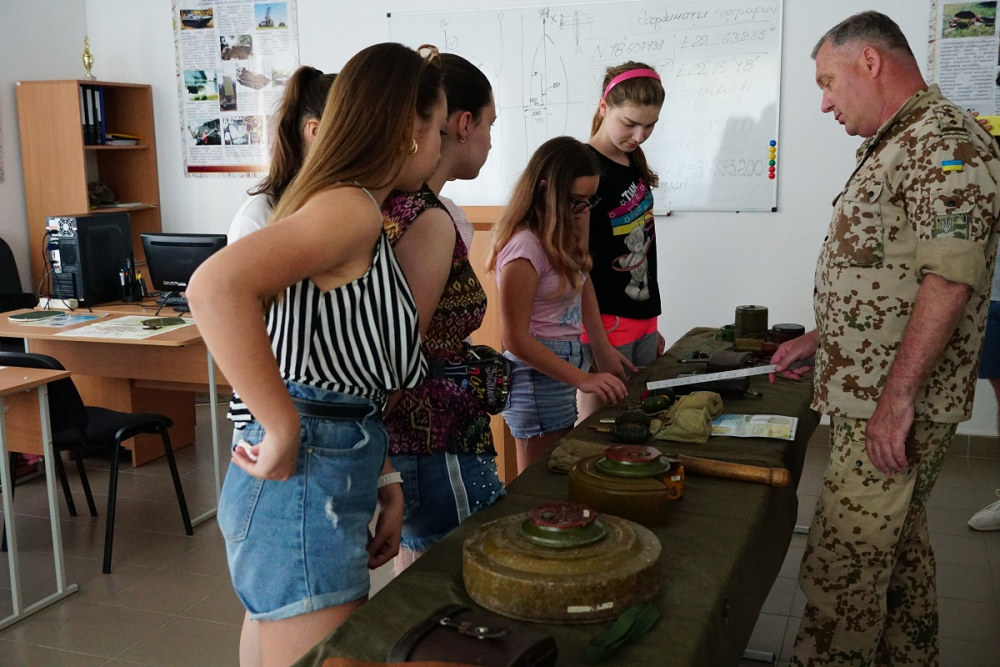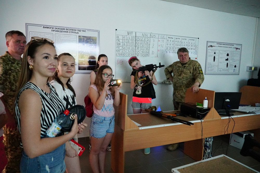 Після спілкування, розділилися на групи і перейшли до практичних занять із викладачами: у класі наземної артилерії знайомилися з особливостями цієї спеціальності та зразками техніки, відтак оглядали стрілецьку зброю й приміряли бронежилети і каски, дізнавалися про інженерні засоби (міни, гранати тощо), засоби спостереження й можливість їх застосування завдяки топографії, а ще стріляли в мультимедійному інтерактивному тирі з пістолета Макарова, автомата Калашникова та ручного кулемета Калашникова.