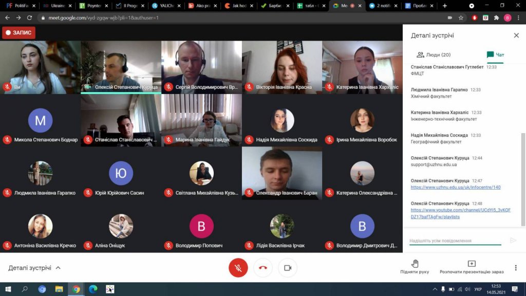 В Ужгородському університеті онлайн-формат курує Центр інформаційних технологій, створюючи комфортні умови для реалізації навчального плану. Для поліпшення роботи, її оптимізації та усунення недоліків під час такої форми навчання студентська рада і профком студентів УжНУ організували відповідне опитування. За його результатами самоврядування провело консультативну нараду з в. о. начальника ЦІТ Олексієм Куруцою: «Сьогодні ми зустрілися, аби краще розуміти, які у студентів виникають труднощі в навчальному процесі з використанням електронних сервісів, що впроваджені в університеті, та в разі потреби відреагувати й під час літньої перерви усунути максимум проблем».