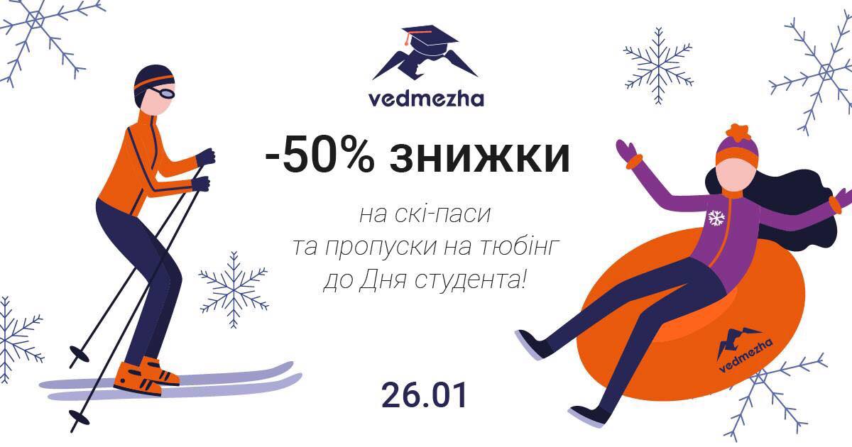 У суботу, 26 січня, на гірськолижному курорті «Ведмежа», що в с.Поляна Свалявського району – студентський день. До Дня святої Тетяни, в який раніше відзначався День студента, адміністрація курорту влаштувала приємний подарунок. Студентський квиток УжНУ цього дня дає 50% знижки на скі-паси (від 125 грн.) та пропуски в тюбінговий парк (від 75 грн).