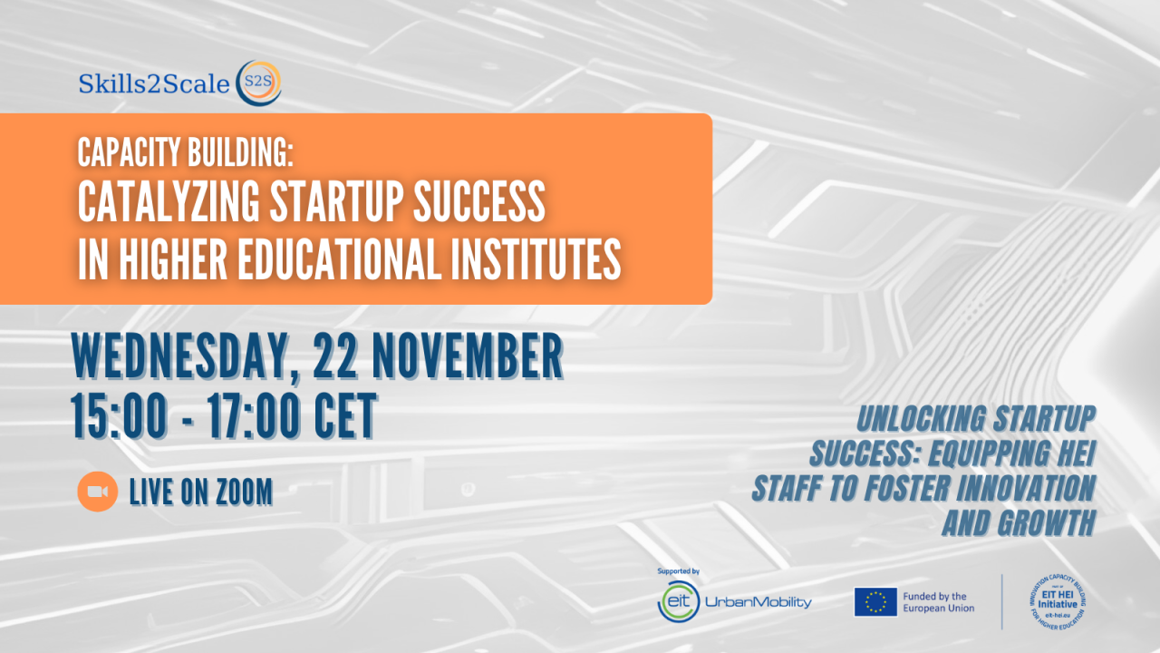 Запрошуємо приєднатись до Програми розвитку «Підтримка успішної реалізації стартапів у закладах вищої освіти», яка спрямована на розширення можливостей закладів вищої освіти. На цьому заході будуть представлені експертні презентації, найкращі практики та інтерактивні сесії запитань і відповідей, розроблені для того, щоб надати як академічному, так і неакадемічному персоналу інструменти для сприяння інноваціям і підприємництву в академічному середовищі. Не пропустіть цю можливість навчатися, спілкуватися та співпрацювати з професіоналами-однодумцями в цій галузі.