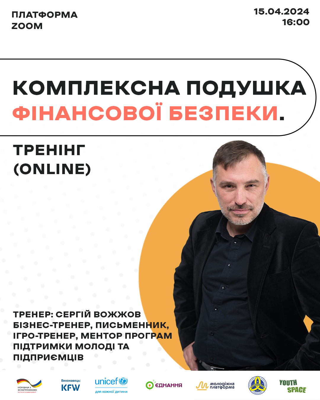 Тренер: Сергій Вожжов - бізнес-тренер, письменник, автор бестселера "Мрія на мільйон" та книжки ділових казок "Лісові комерсанти", ігро-тренер, автор ділових настільних ігор "Лісові комерсанти" та "Життєвий капітал", ментор програм підтримки молоді та підприємців, викладач фінансової грамотності та соціального шкільного підприємництва в державних та приватних закладах освіти.