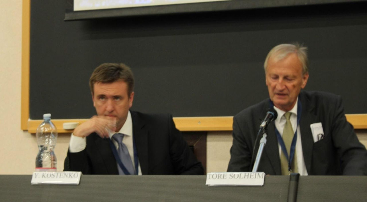На фото проф. Костенко Є.Я. разом з проф. Торе Солхеймом очолюють секцію дентальної ідентифікації на конгресі IOFOS (Італія)