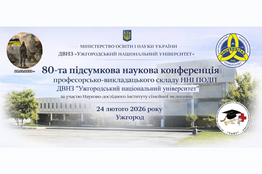 24 лютого 2026 року в Навчально-науковому інституті післядипломної освіти та доуніверситетської підготовки ДВНЗ «Ужгородський національний університет» відбулася 80-та підсумкова наукова конференція професорсько-викладацького складу. Захід об’єднав науковців усіх кафедр інституту та став важливою платформою для підбиття підсумків наукової діяльності, обміну досвідом і визначення перспектив подальших досліджень.