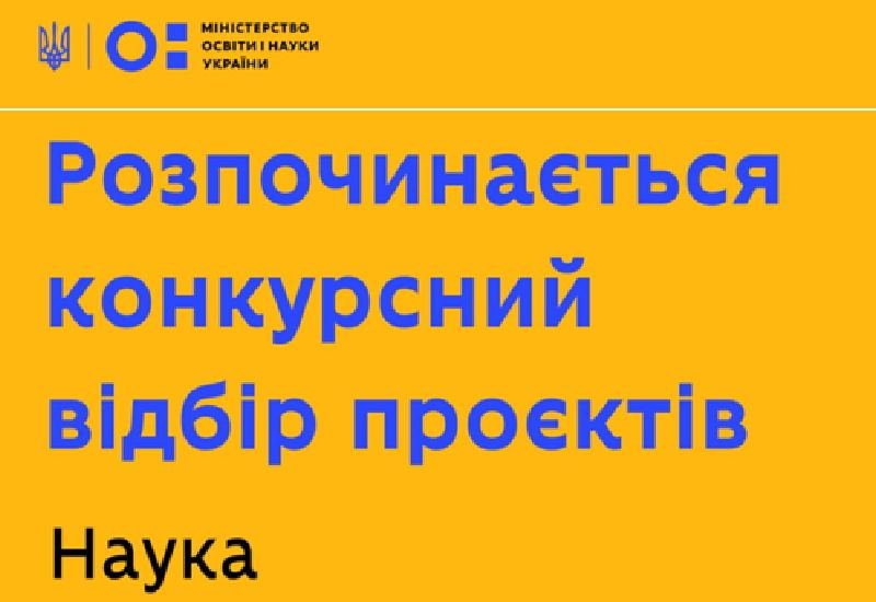 Міністерство освіти і науки України оголосило конкурсний відбір проєктів фундаментальних наукових досліджень, прикладних наукових досліджень, науково-технічних (експериментальних) розробок, виконавцями яких є заклади вищої освіти та наукові установи, що належать до сфери управління Міністерства освіти і науки України. Відповідний наказ від 11.09.2023 № 1113 розміщено на сайті МОН.