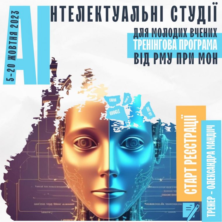 Тренінгова програма «АІнтелектуальні студії» створена в якості інформаційної підтримки молодих вчених України в площині залучення сучасних технологій для полегшення щоденної роботи і має на меті ознайомлення з можливостями прикладного використання інструментів штучного інтелекту (АІ) в науковій діяльності. Дана програма не лише про можливості, а й про ризики та моделі, які не працюють!