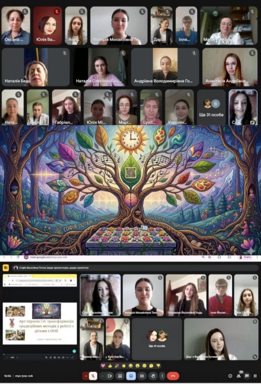 16 квітня 2026 року для студентів спеціальностей А6 Спеціальна освіта та С4 Психологія відбувся інноваційний захід на тему «Арт-терапія 2.0: трансформація традиційних методів у роботі з дітьми з ООП». Спікерка зустрічі, PhD з педагогіки Софія Потюк, представила концепцію, де мистецтво стає не просто способом дозвілля, а точним інструментом нейрокорекції. Основною ідеєю заходу стала метафора дерева: замість того, щоб «підфарбовувати жовте листя» (працювати лише з зовнішніми симптомами), Арт-терапія 2.0 пропонує зміцнювати коріння ‒ працювати з нейронними зв'язками, сенсорною інтеграцією та базальними ритмами мозку.
