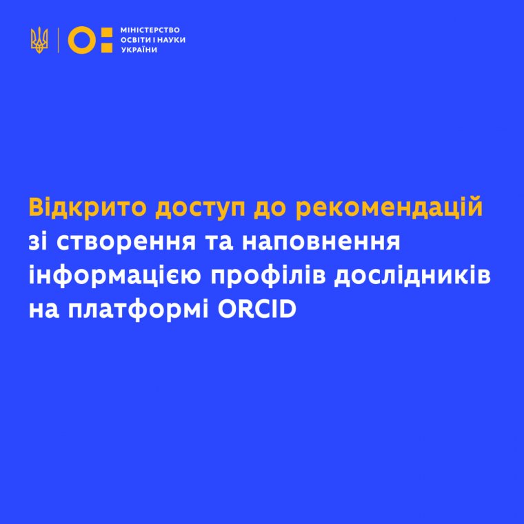 Міністерство освіти і науки України інформує про розміщення у відкритому доступі на офіційному вебсайті Державної науково-технічної бібліотеки України українською мовою «Рекомендацій зі створення та наповнення інформацією профілів дослідників на платформі ORCID».