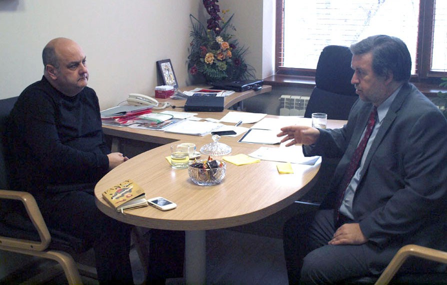 В Ужгородському національному університеті Генконсул зустрівся з проректором з науково-педагогічної роботи Юрієм Перестою для обговорення пріоритетних напрямків роботи вишу: вивчення іноземних мов, отримання подвійних дипломів, розробка ґрантових проектів тощо.