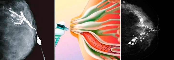 Контраст вводиться спеціальним катетером. Це необхідно для уточнення виявлених змін і диференційної діагностики, щоб визначити: чи це запальний процес, чи новоутвір у протоці, з наступним мамографічним знімком у двох проекціях. Контраст, ідучи по протоці, вимальовує її будову. У нормі це гілка дерева з розгалуженням по периферії. Зображення протоки, її цілісність, чітка контурованість стінок, прохідність/непрохідність беруть до уваги під час постановки діагнозу. Дослідження застосовується для уточнення діагнозу «внутрішньопротокового папіломатозу», проявами якого можуть виділення з соска. В цьому плані даний метод не має альтернативи.